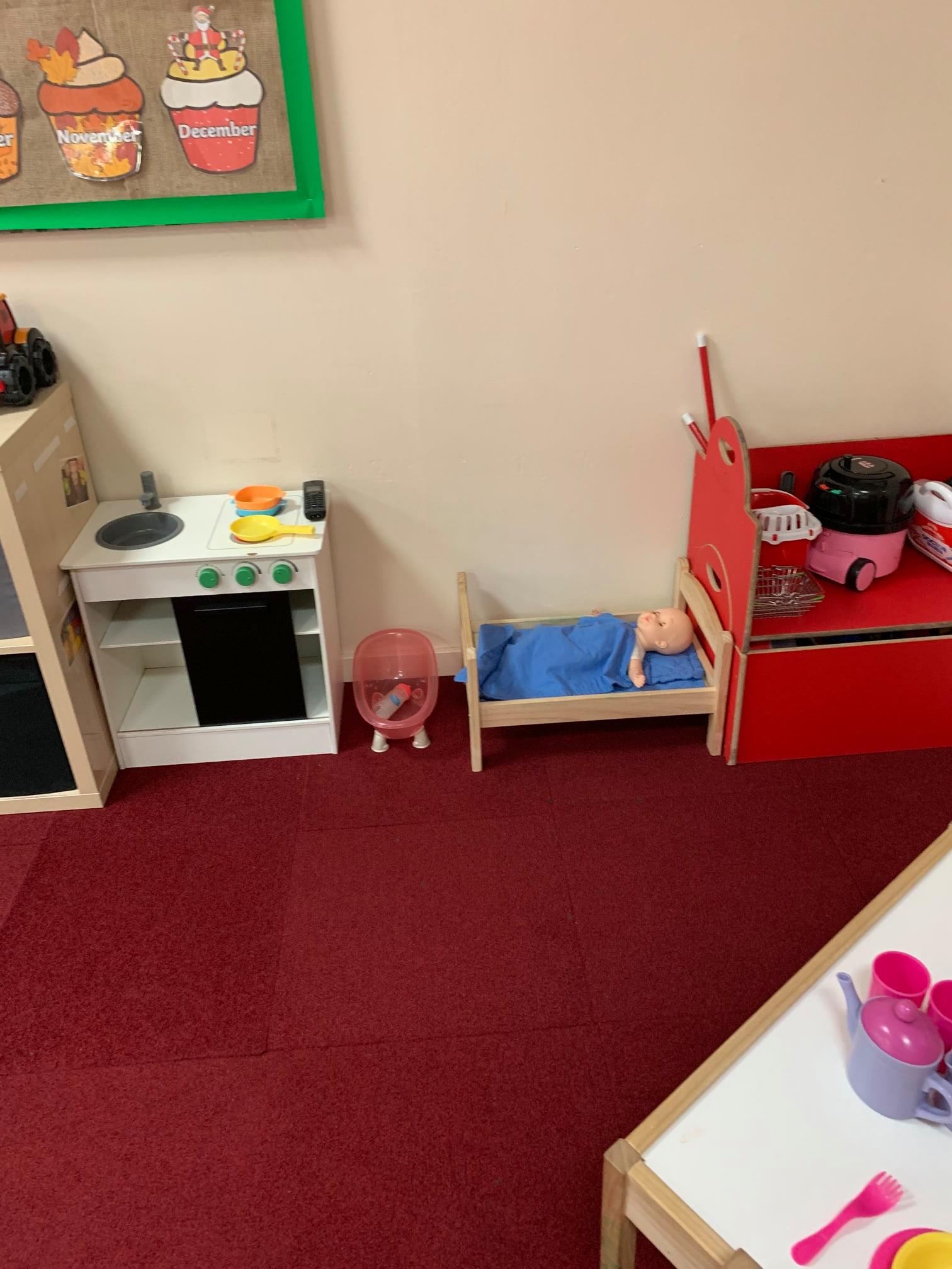 The 2-3 year olds have a minimum of 1:4 staff/child ratios. During a settling in period, they will be with their key member of staff from the Baby Unit. This unit provides an introduction to large play apparatus, home/role play area, art, craft and messy play area, a quiet/book area, tabletop group and individual activities. The staff in this unit encourage the children to participate in a simple group daily routine such as meal and rest times, but are happy to cater for parent’s individual requests.